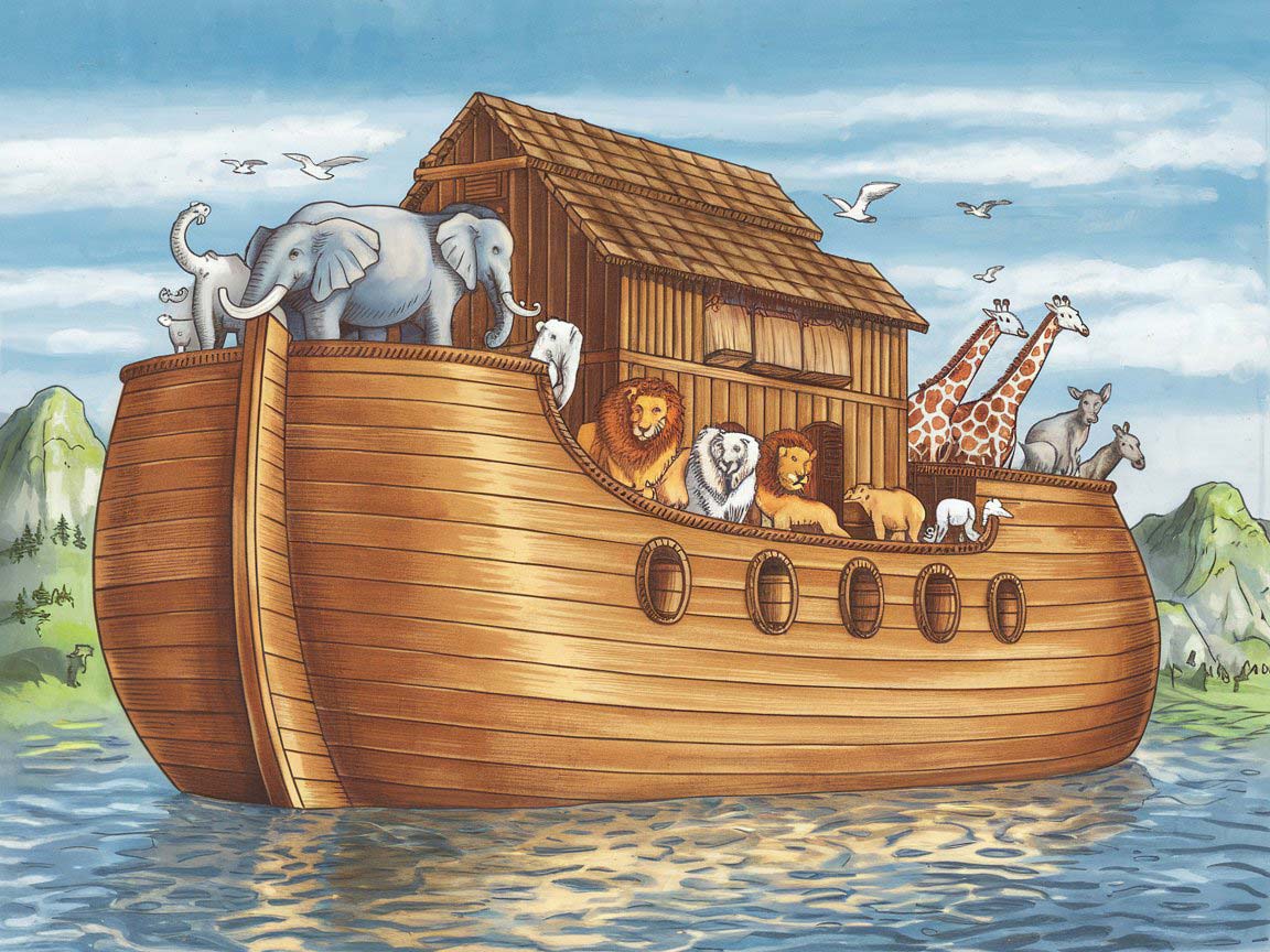 Pairs adventure (animals two-by-two) with God’s promise (rainbow).